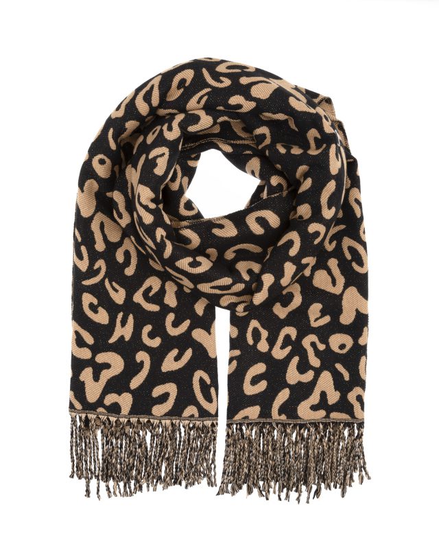 Měkká a příjemná dámská šála s jemnými třpytkami a vzorem, zakončena stylovými třásněmi. Hebký materiál je příjemný na dotek a vhodný pro každodenní nošení.